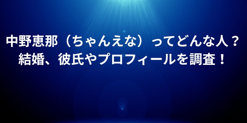 中野恵那(ちゃんえな)ってどんな人?と気になっている方も多いのではないでしょうか。